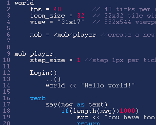 Writing games in BYOND is fast and easy. Write object-oriented code in BYOND's own DM, a flexible, but powerful programming language.